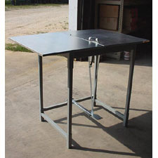 THIS STAND IS CONSTRUCTED OF HIGHLY DURABLE, THICK-WALLED STEEL TUBING AND HEAVY GAUGE STEEL.THE 31in X 46in TOP IS CONSTRUCTED OF ALUMINUM TO RESIST RUST AND STAINING. SNAP FASTENERS SECURE THE LEGS TO THE FRAME AND CAN BE REMOVED FOR EASY STORAGE. (TOP AND NO-HAMMER CLAMP MACHINE INCLUDED IN THIS PRICE.)(Additional shipping charges may apply)